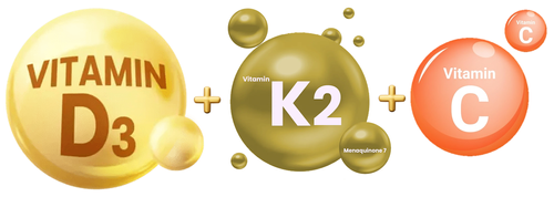 Összetevők: L-Aszkorbinsav (C-vitamin), maltodextrin, kapszulahéj (Zselatin), kolekalciferol (D3-vitamin), menakinon (K2-vitamin), csomósodást gátló anyagok (kalcium-foszfátok, szilícium-dioxid).